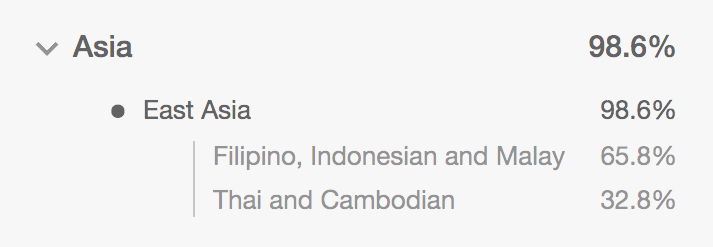 Okay, so 98.6% South East Asian. So… what about the other 1.4% you ask? Well, my mother always thought I would have some South Indian blood in me, considering how my paternal side was from an area in Malaysia where the population of Indian migrants were high. Looks like she was mistaken because…