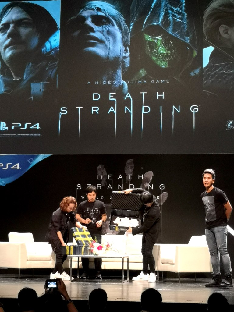 Kojima-san and Shinkawa-san talked about how Death Stranding was about connection – with everyone who was playing and with those in our lives. Like the footprints that you see on the beach in the game, they intertwine with those of others. Then they answered fan questions like, “What is the heaviest bag you’ve carried?”